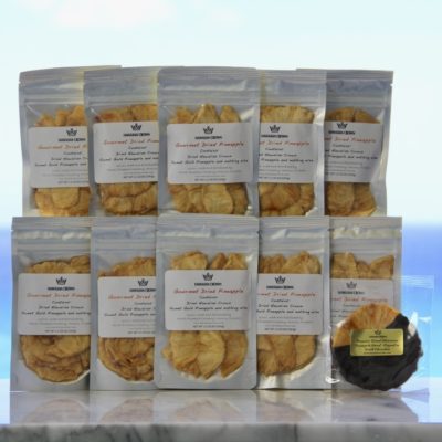 100% pure dried Hawaiian pineapple, grown and dried in Hawaii. Just the incredibly sweet taste of pineapple with no added sugar or preservatives. This gourmet dried pineapple is simply the best tasting all-natural snack you will ever try!